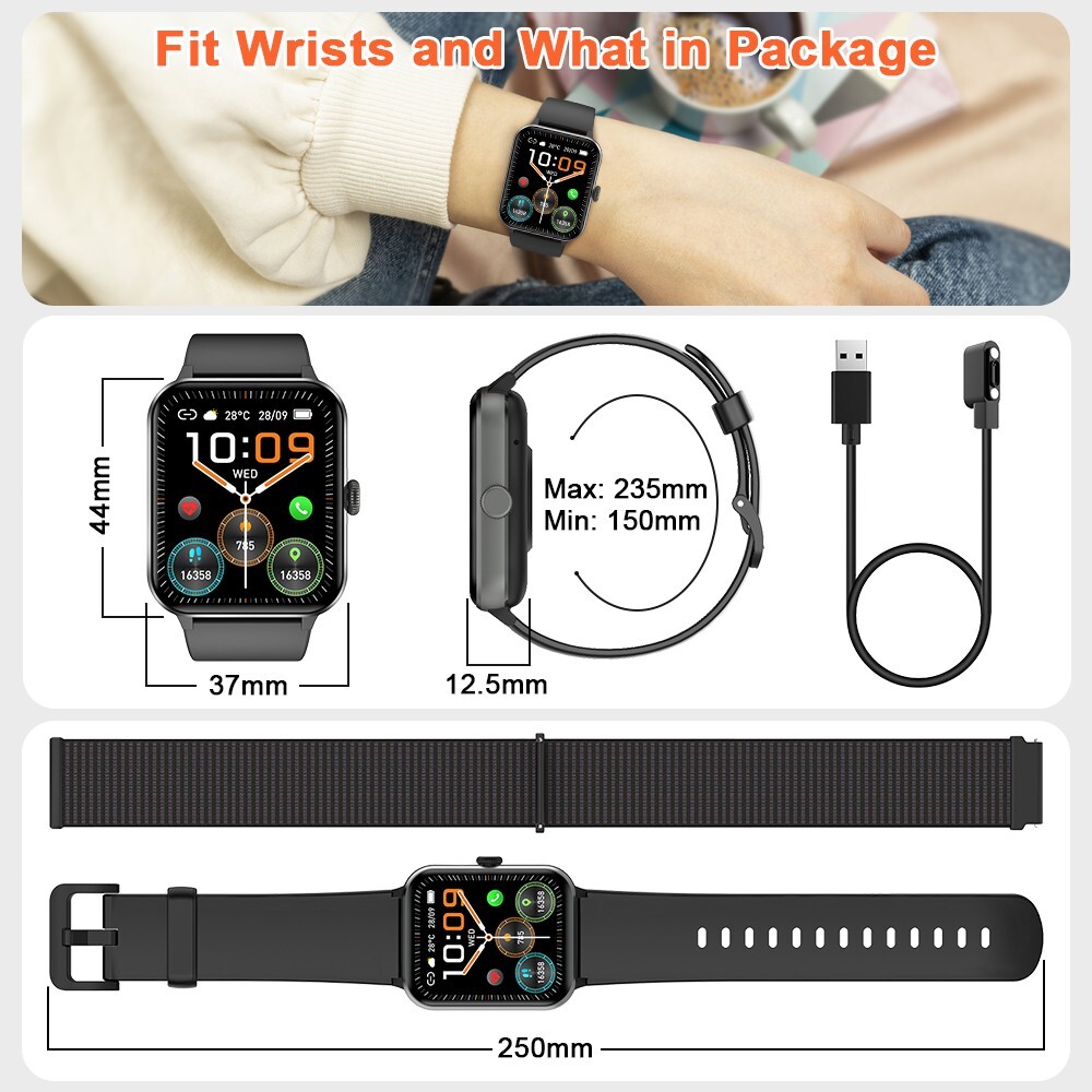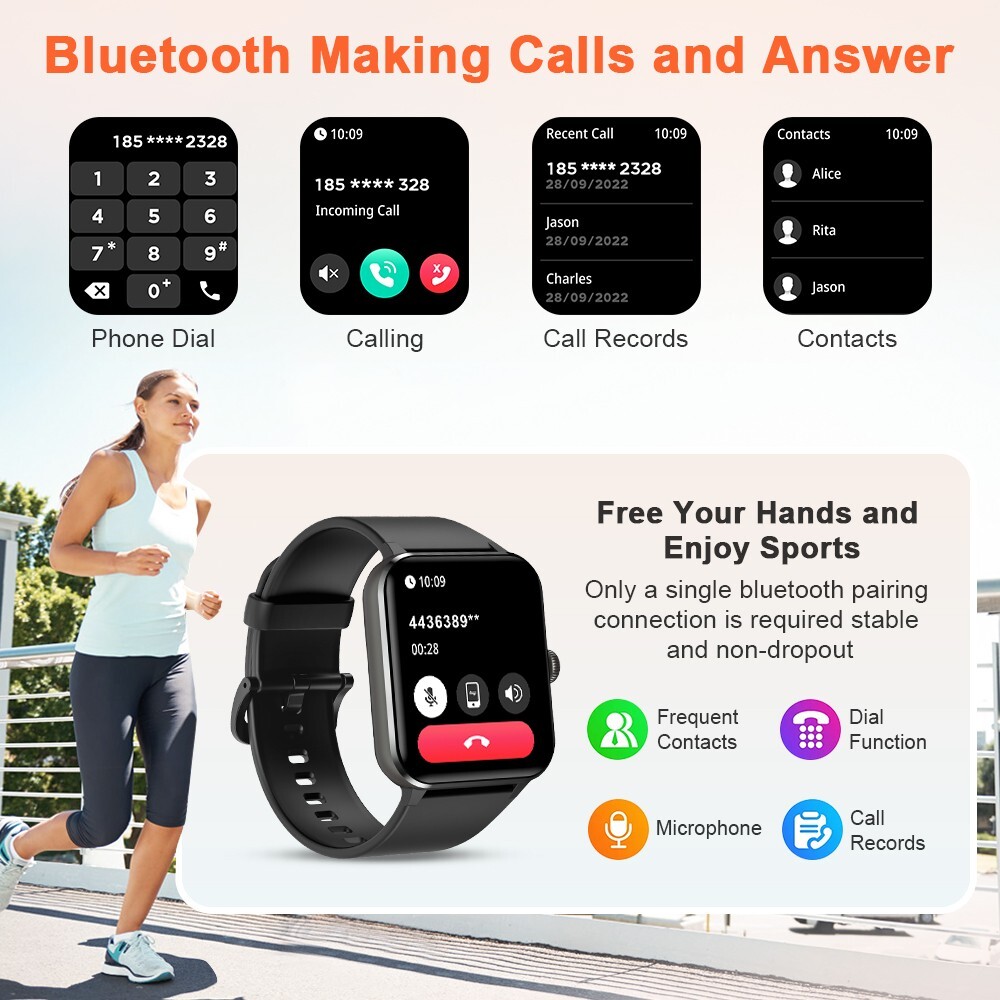 Blood Oxygen Sensor, Blood Pressure Monitor, Bluetooth Enabled, Caller ID, Fitness Tracker, Heart Rate Monitor, Music Player, Sleep Monitor, Speakerphone, Touchscreen, Waterproof, LED Flashlight , Timer/ Alarm Clock, ,Bluetooth Calling, Intelligent Voice Assistant, Find Phone, 100+ Sport Mode, Weather Forecast, High-power Speakerphone, Dual Strap, Information Reminder, birthday gift, Father's Day gift, Game, Gift