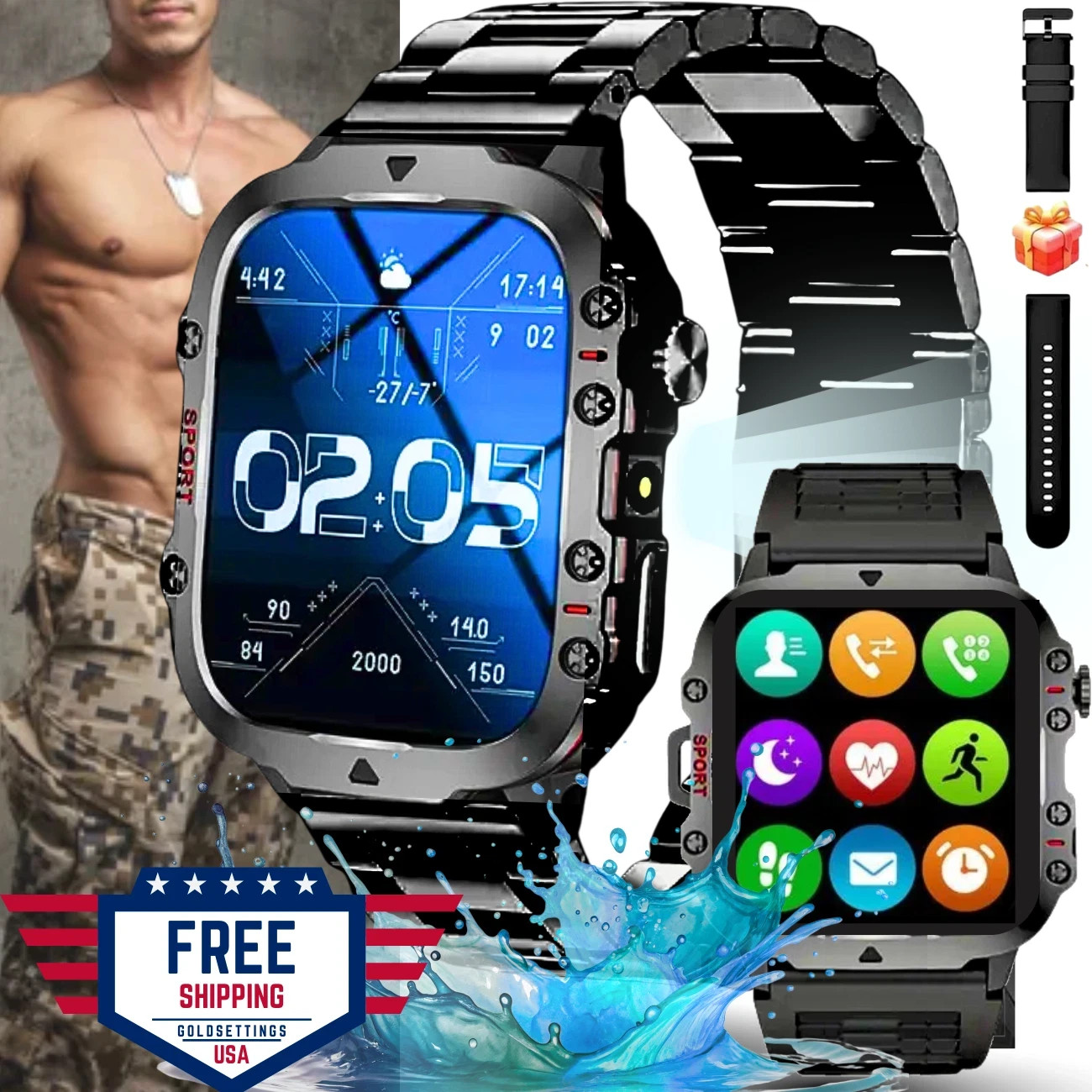 🔥 Military Smart Watch Men(Call Receive/Dial) Rugged Tactical Fitness Tracker