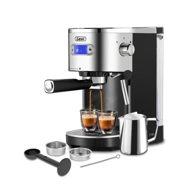 The Espresso Machine 20 Bar Fast Heating Coffee Maker with Foaming Milk GECME400BA-U is a high-quality espresso machine from the brand Gevi. With a pressure of 20 bar, this machine is perfect for making delicious espresso drinks at home. Its fast heating element ensures that you can enjoy a cup of coffee in no time, and the milk frothing feature lets you create creamy foam for lattes and cappuccinos. The compact design and user-friendly interface make this coffee maker a convenient addition to any kitchen for coffee enthusiasts.