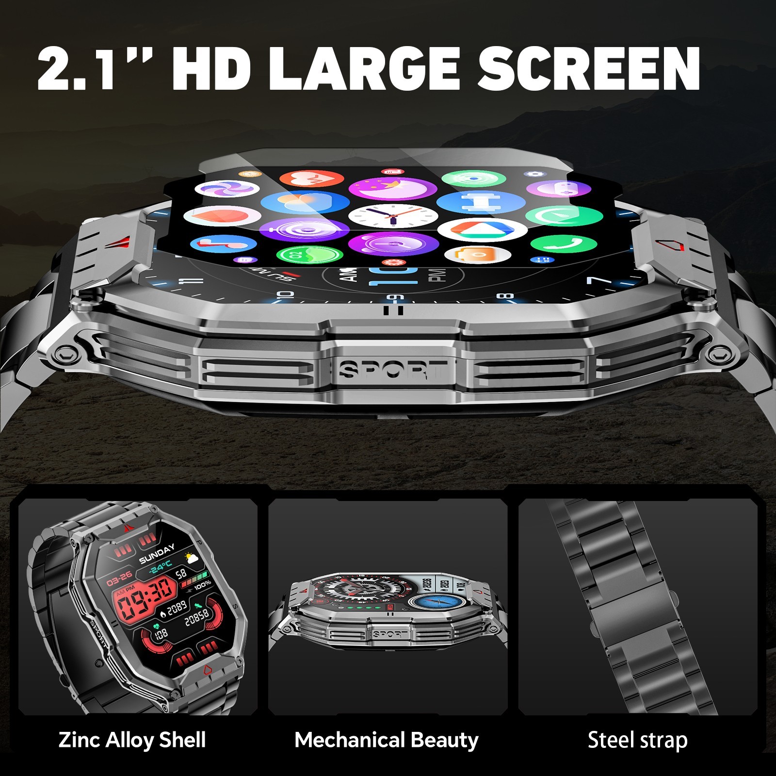 🔥2.1" Smartwatch (Answer/Make Call) 3ATM Waterproof 650mAh Military Sport Watch