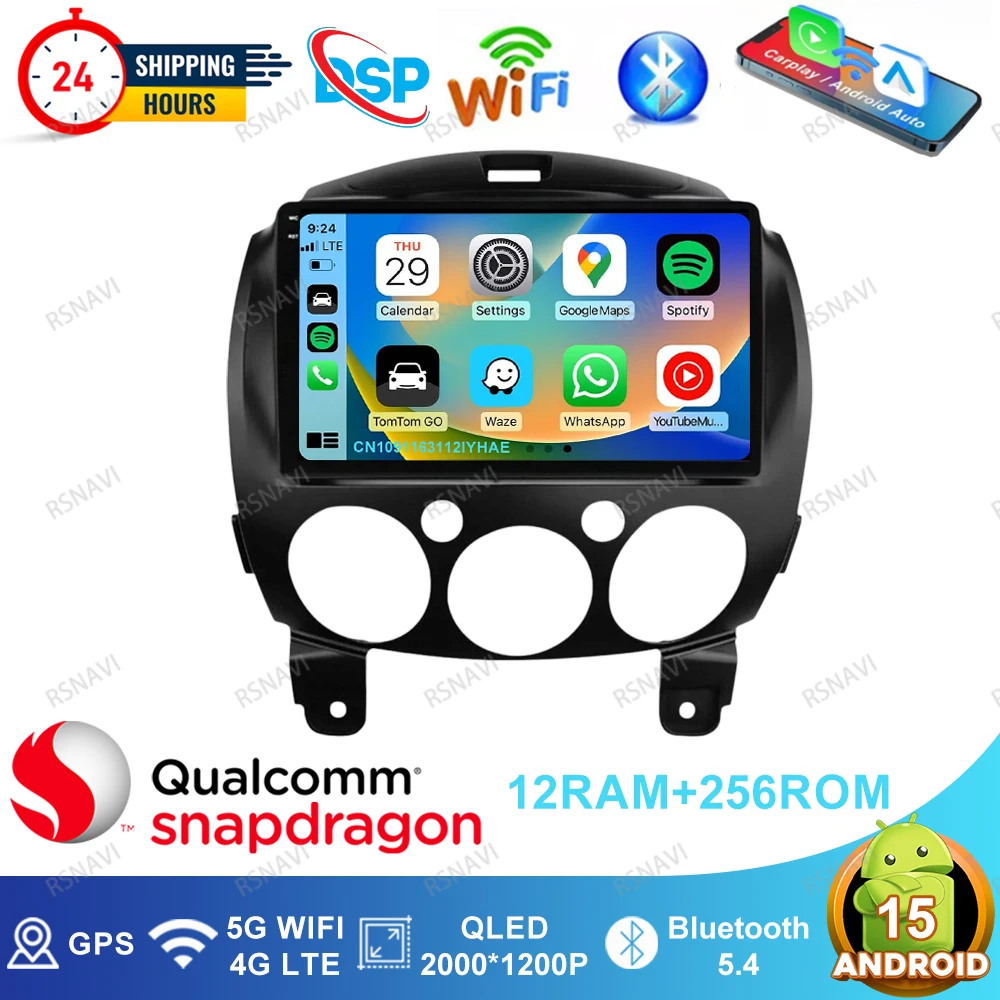 Android 15 Car Radio For MAZDA 2 Mazda2 2007 2008 2009 2010 2011 2012 2013 2014 Wireless Carplay Auto QLED DVD Viedo Player DSP $105.52
