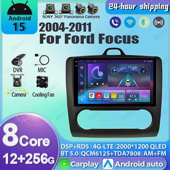 Android14 Carplay Car Radio Multimedia Player WiFi+4G For Ford Focus 2 3 Mk2 Mk3 2004 2005 2006 2007 -2011 Navigation GPS Stereo $81.95