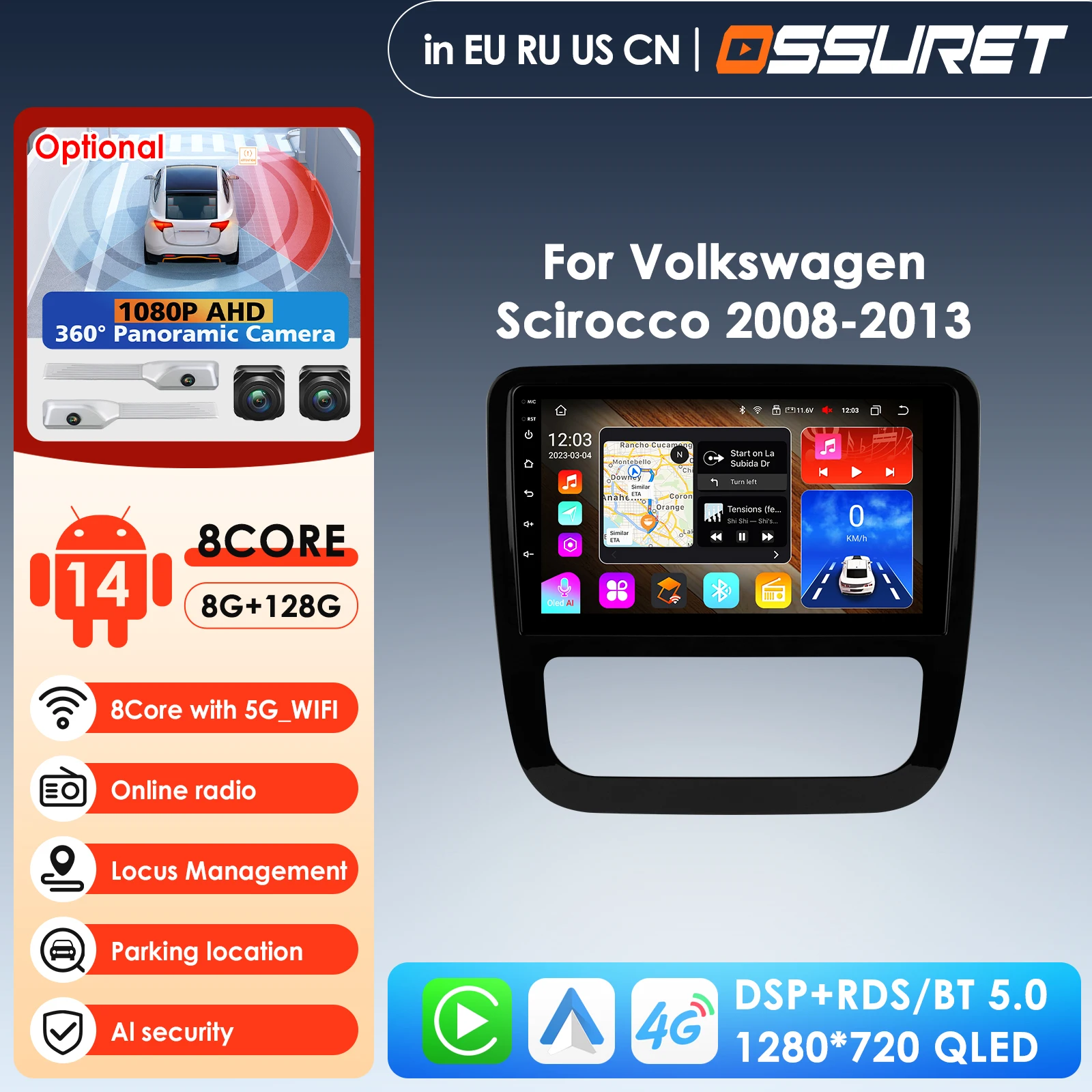 Carplay 4G 2 Din Android 14 Car Radio for Volkswagen EOS Scirocco 3 III Mk3 2008 2009 2010 2011 2012-2014 Multimedia Player GPS $70.23