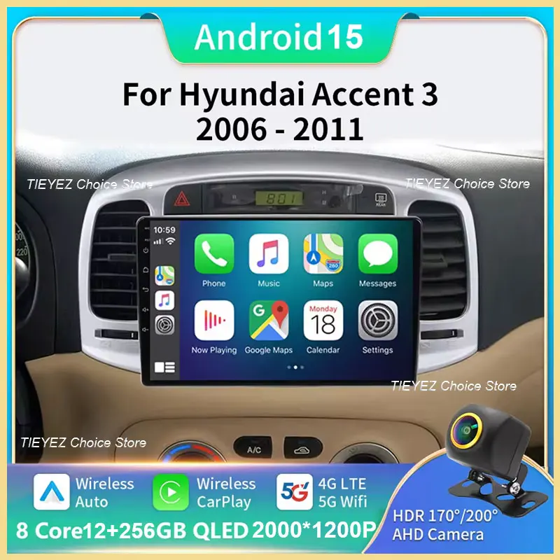 Android 15 Car Radio Auto Carplay For Hyundai Accent 2008 - 2011Multimedia Qled Screen Stereo Autoradio GPS Navigation Wifi 4G $94.54