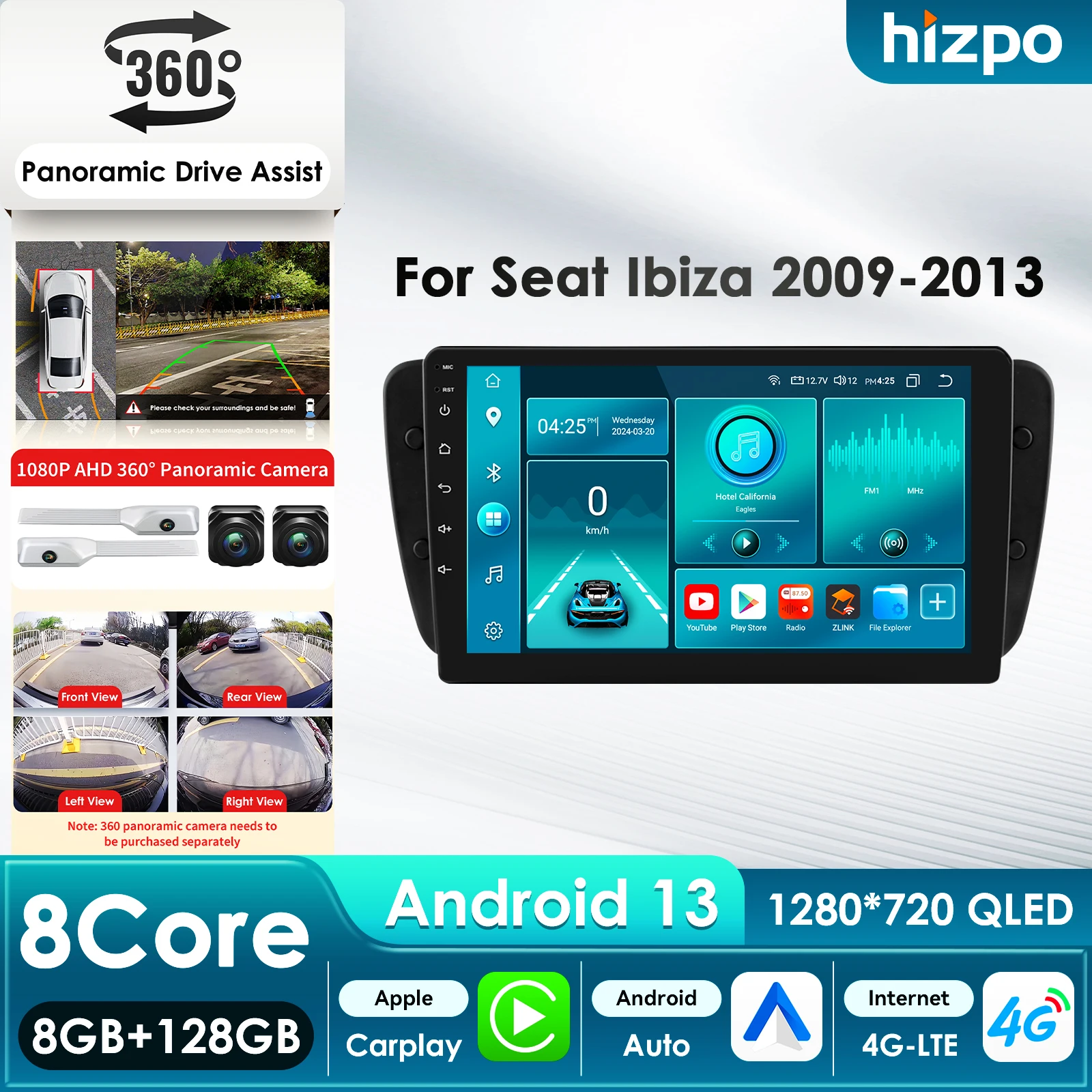 Hizpo Android Car Radio for Seat Ibiza MK4 6J 2009 - 2013 Multimedia Player CarPlay Android Auto GPS Bluetooth 5G WIFI Head Unit $76.65