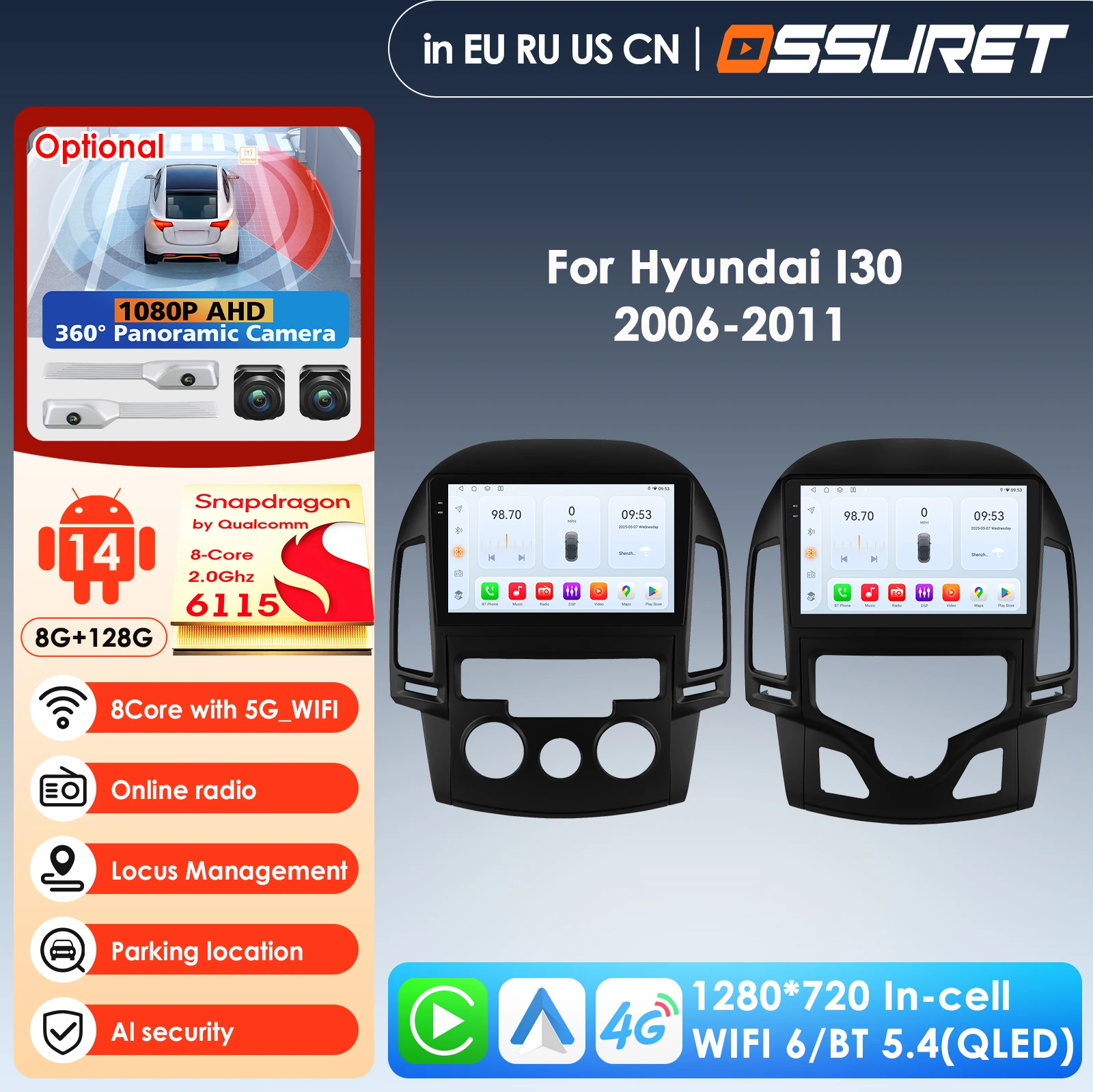 360 Camera AI Intelligent Player Carplay Auto 4G 2din Android Car Radio for Auto Hyundai I30 2006 - 2011 Manual Autoradio GPS BT $61.00
