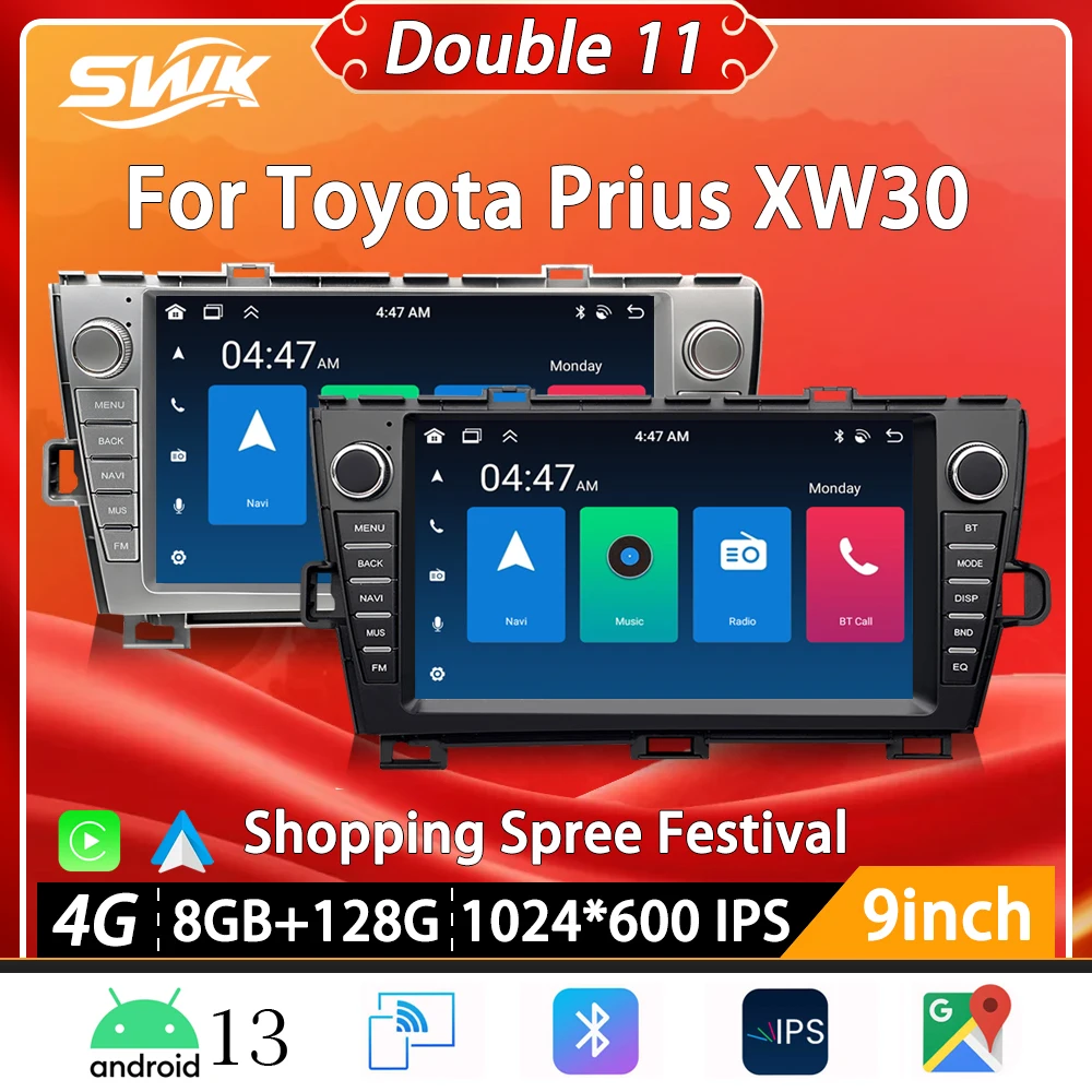 SWEOXO For Toyota Prius XW30 9″ Android 13 Car Radio Stereo Multimedia Audio Wireless Carplay AUTO Naviga BT GPS DSP Player $135.62