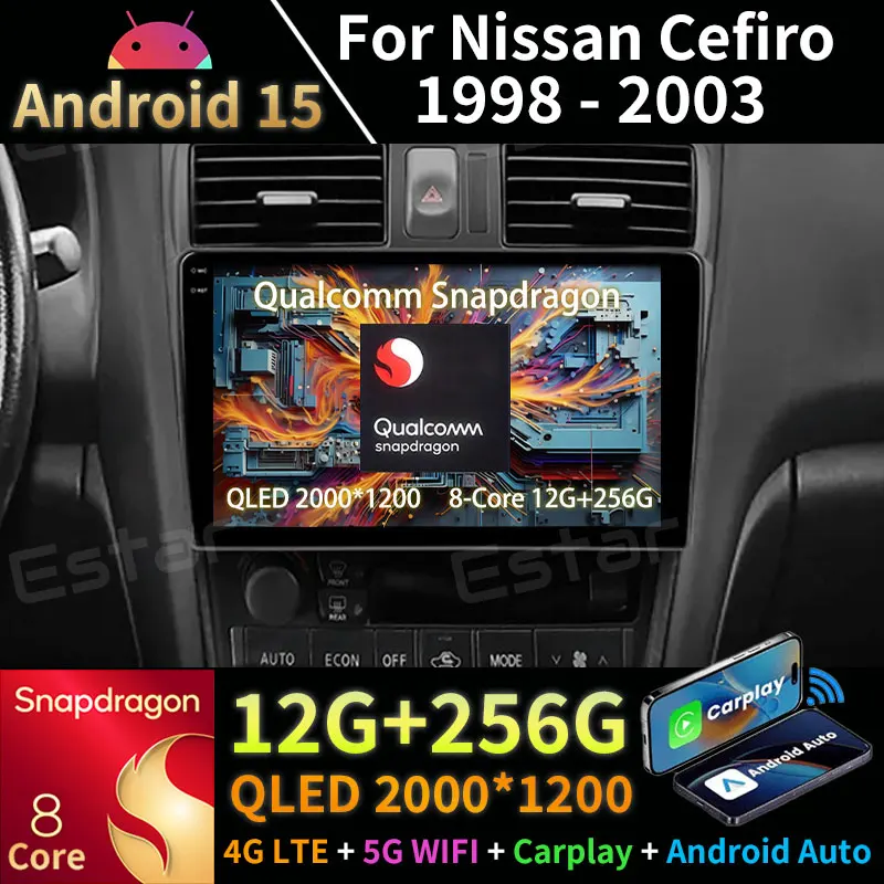 Android 15 Car Radio For Nissan Cefiro A33 1998 - 2003 GPS Multimedia Player Navi Head Unit Stereo Wireless Carplay BT Audio DSP $106.67