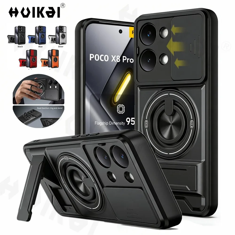 Case For Xiaomi Poco X8 Pro Max Poco X7 Pro Magnetic Stand Slide Camera Protector Shockproof Armor Hard Kickstand Phone Cover $6.75