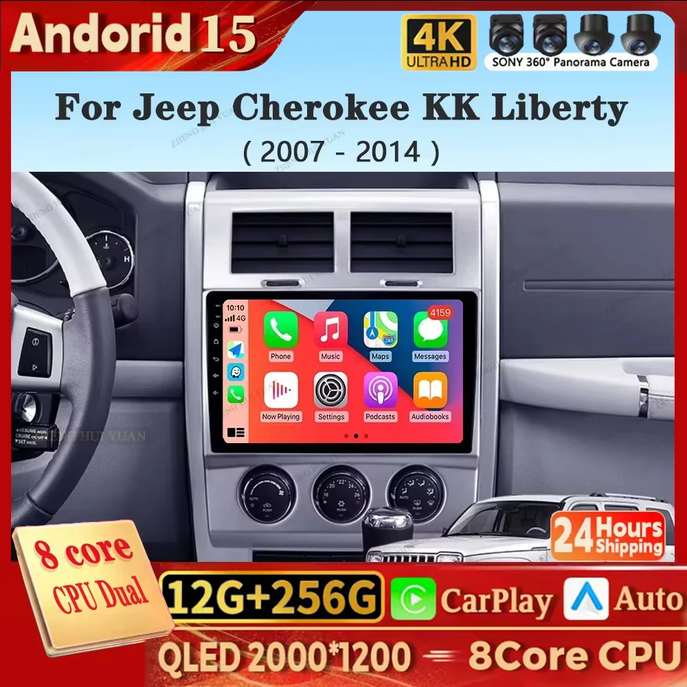 For Jeep Cherokee KK Liberty 2007 - 2012 Car Radio Multimedia Video Player Navigation GPS 4G Carplay+Auto Android 15 Autoradio $96.00