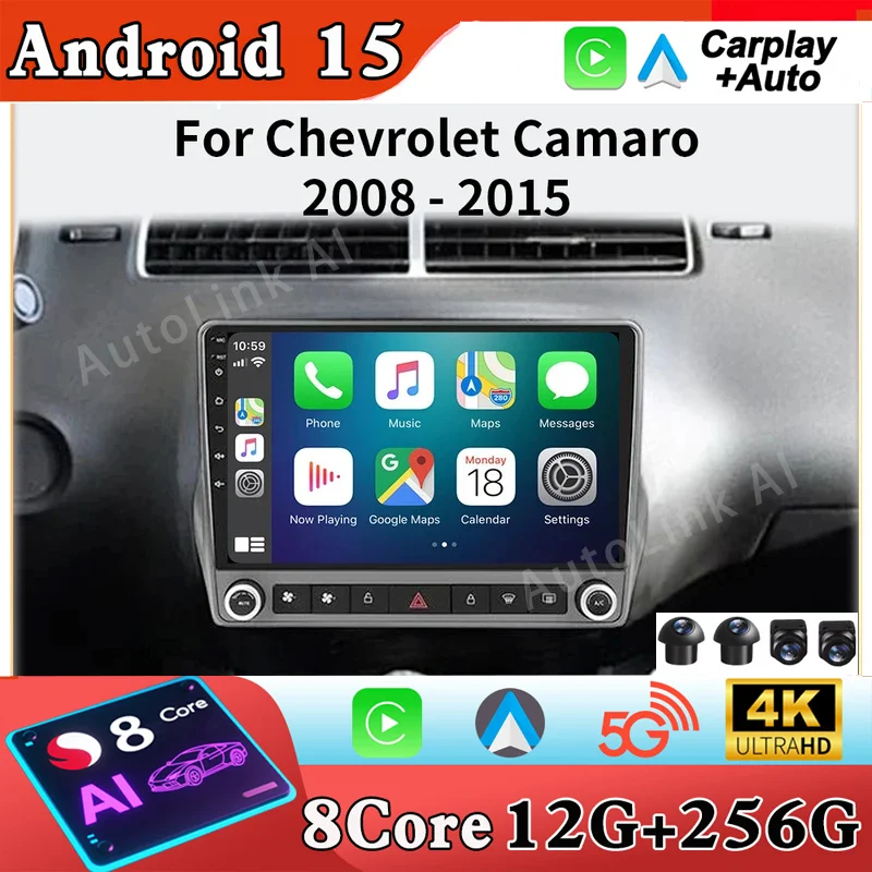 2Din Android 15 Car Radio For Chevrolet Camaro 2008-2015 Carplay Stereo Player Autoradio WIFI GPS Navigation FM/RDS 5G LET DSP $148.49