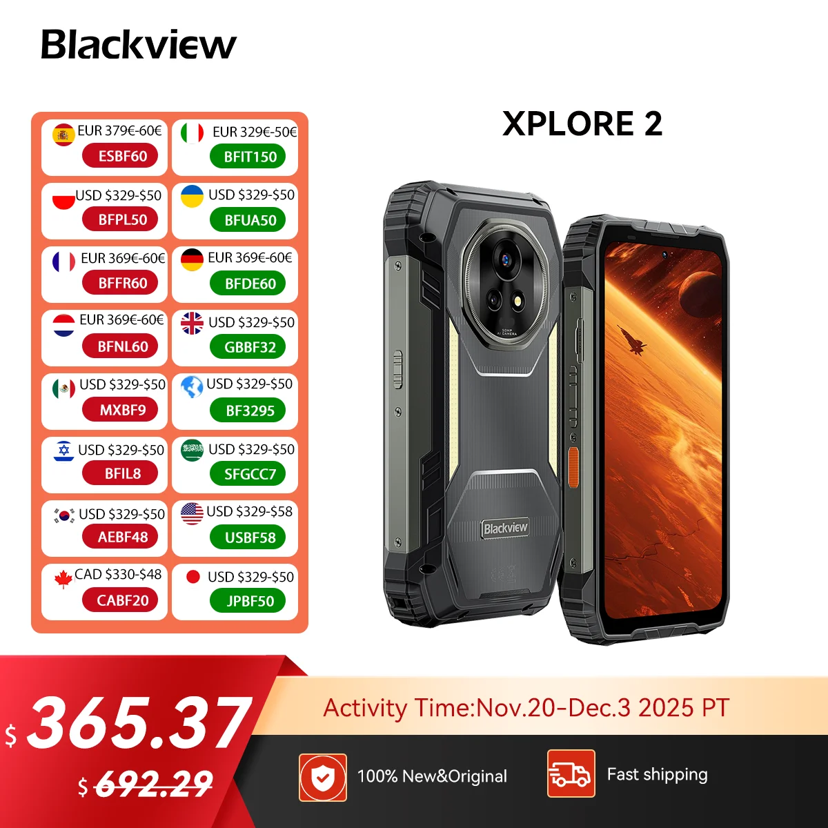 Blackview XPLORE 2 5G Rugged Smartphone,6.73" AMOLED Display 20000mAh Battery 120W Fast Charge,50MP Camera, Outdoor Mobile Phone $415.37