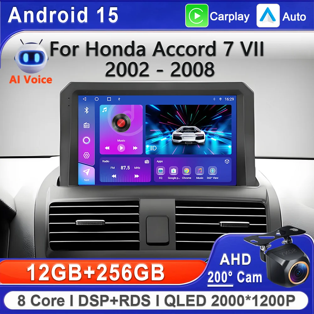 Android 15 2K Incell Screen For Honda Accord 7 VII 2002 - 2008 Stereo Head Unit GPS Navigation High-performance CPU DVD Dash Cam $80.75