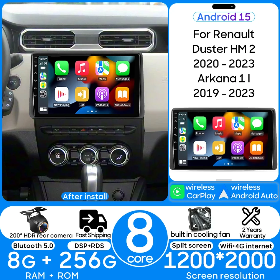 Android 15 For Renault Duster HM 2 Arkana 1 I2019 - 2023 Car Radio Multimedia Video Player Navigation GPS CarPlay Auto 2din $67.30