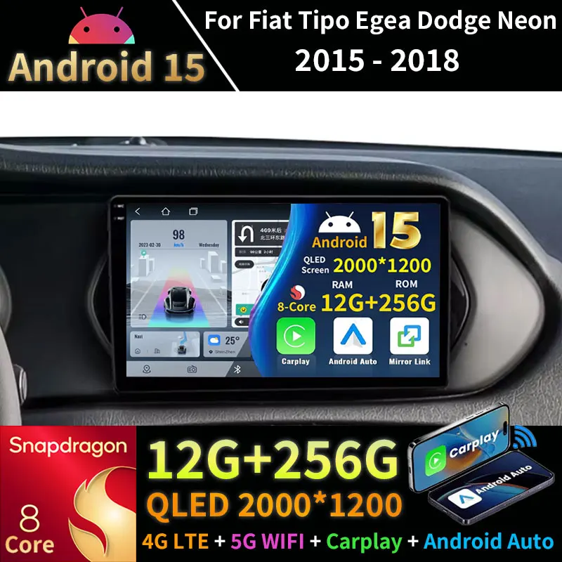 2K QLED Stereo Android 15 For Fiat Tipo Egea Dodge Neon 2015-2018 Car Radio Multimedia Video Player GPS 4G CarPlay 360 Camera BT $112.75