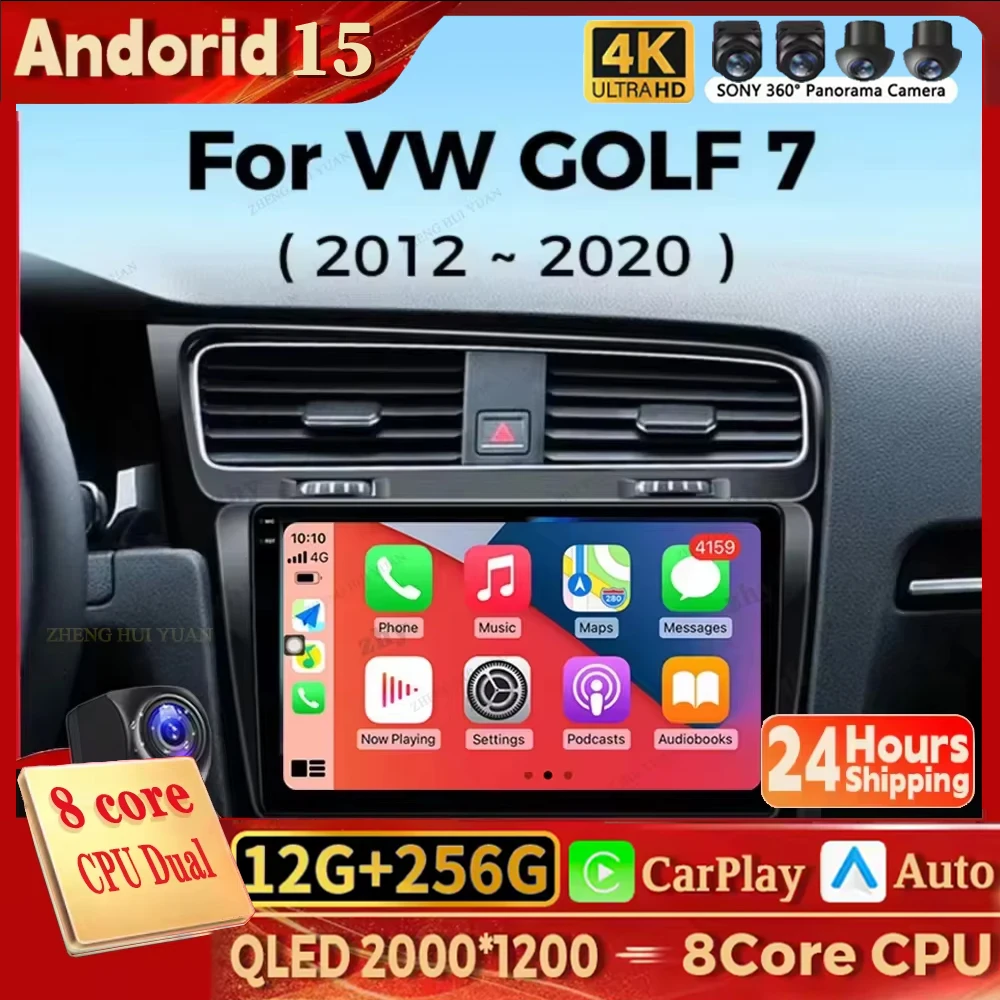 For Volkswagen VW Golf 7 MK7 GTI 2012-2020 Car Radio Carplay Multimedia Android 15 Auto Navi GPS Stereo New Video Player WIFI+4G $80.62