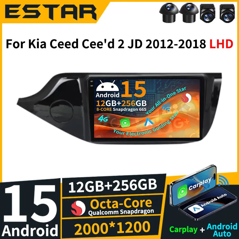 Wireless Carplay Auto Android 15 For Kia Ceed Cee'd 2 JD 2012-2018 Car Radio DSP Stereo 2K Screen 360 Camera 2din QLED 4G LTE BT $139.63