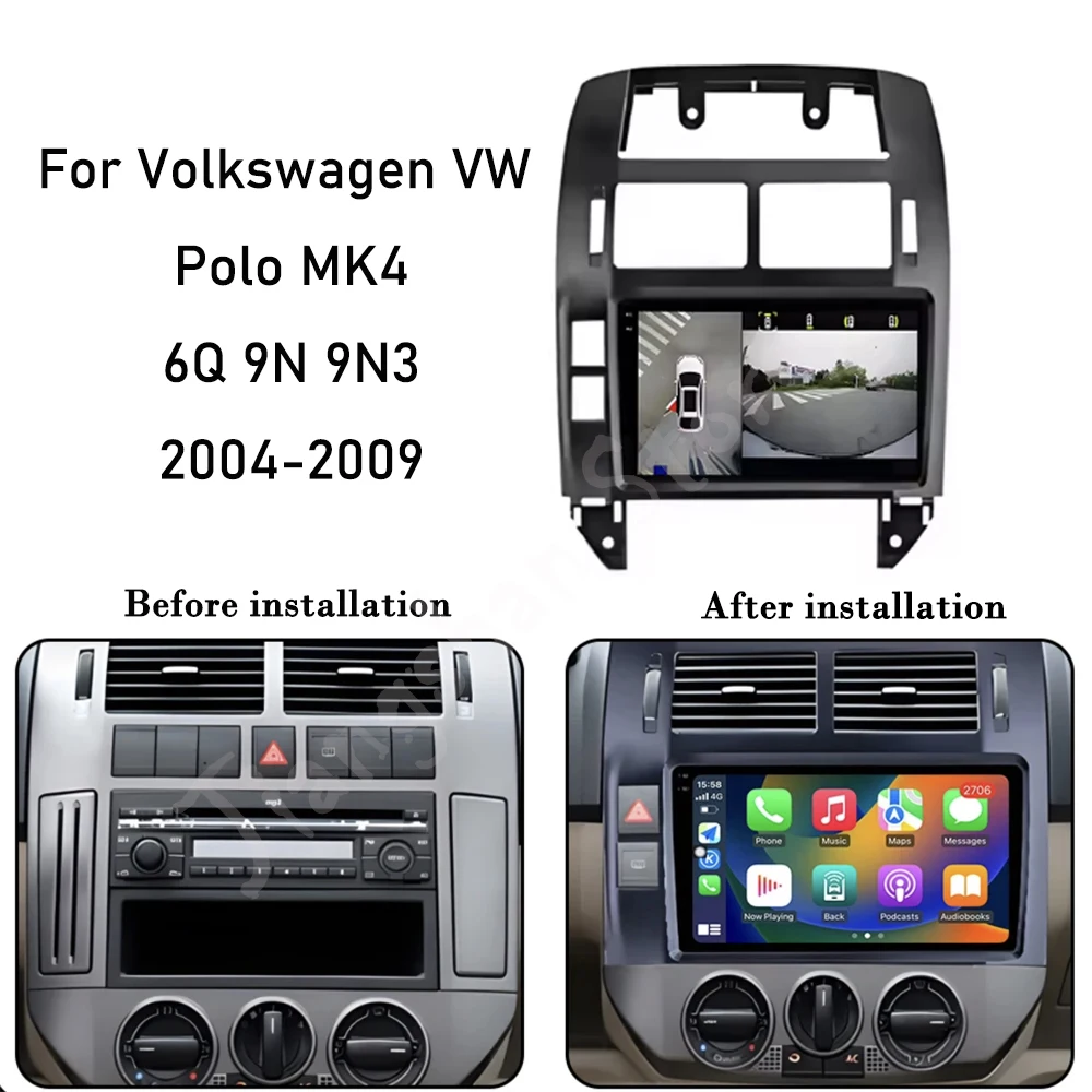 QLED Screen Android 16 Carplay For Volkswagen VW Polo MK4 6Q 9N 9N3 2004-2009 Car Radio Multimedia Video Player GPS Navigation $110.43