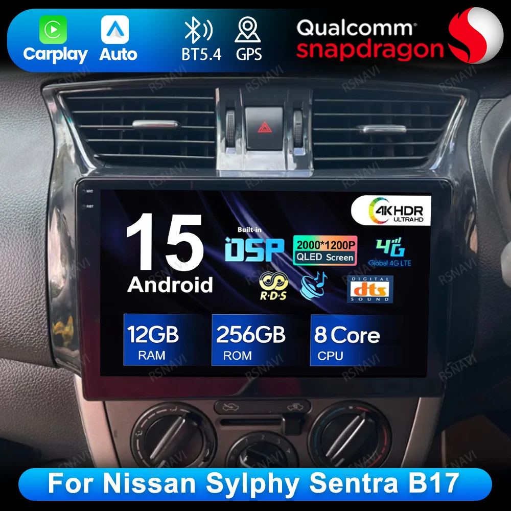 Android 15 For Nissan Sylphy Sentra B17 BT NO 2DIN Head Unit AUTO Qualcomm Multimedia 5G WIFI RDS DVD Autoradio Carplay DSP QLED $134.55