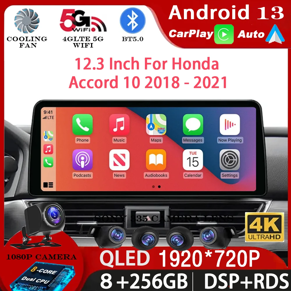 12.3 Inch Android 15 For Honda Accord 10 2018 - 2021 QLED Screen Multimedia Video Player Car Radio GPS Navigation Carplay 5G DSP $227.11