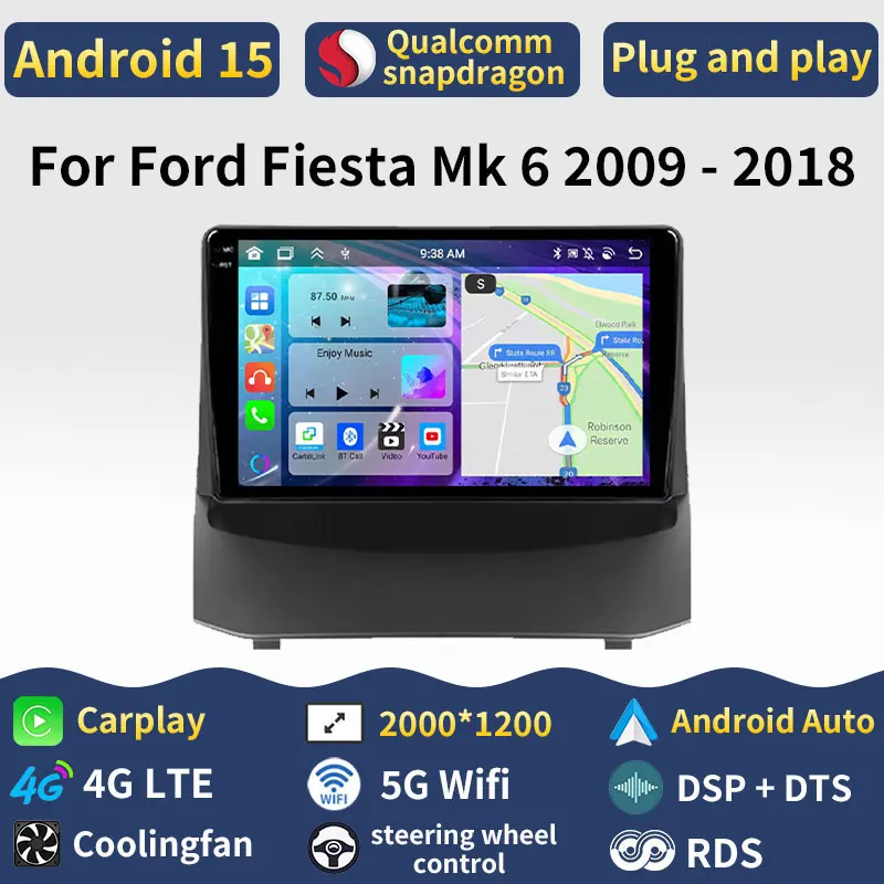 Android 15 For Ford Fiesta Mk 6 2009 - 2018 Car Radio Wireless Carplay Auto 4G+5GWIFI DSP BT Stereo Navigation Multimedia player $117.82