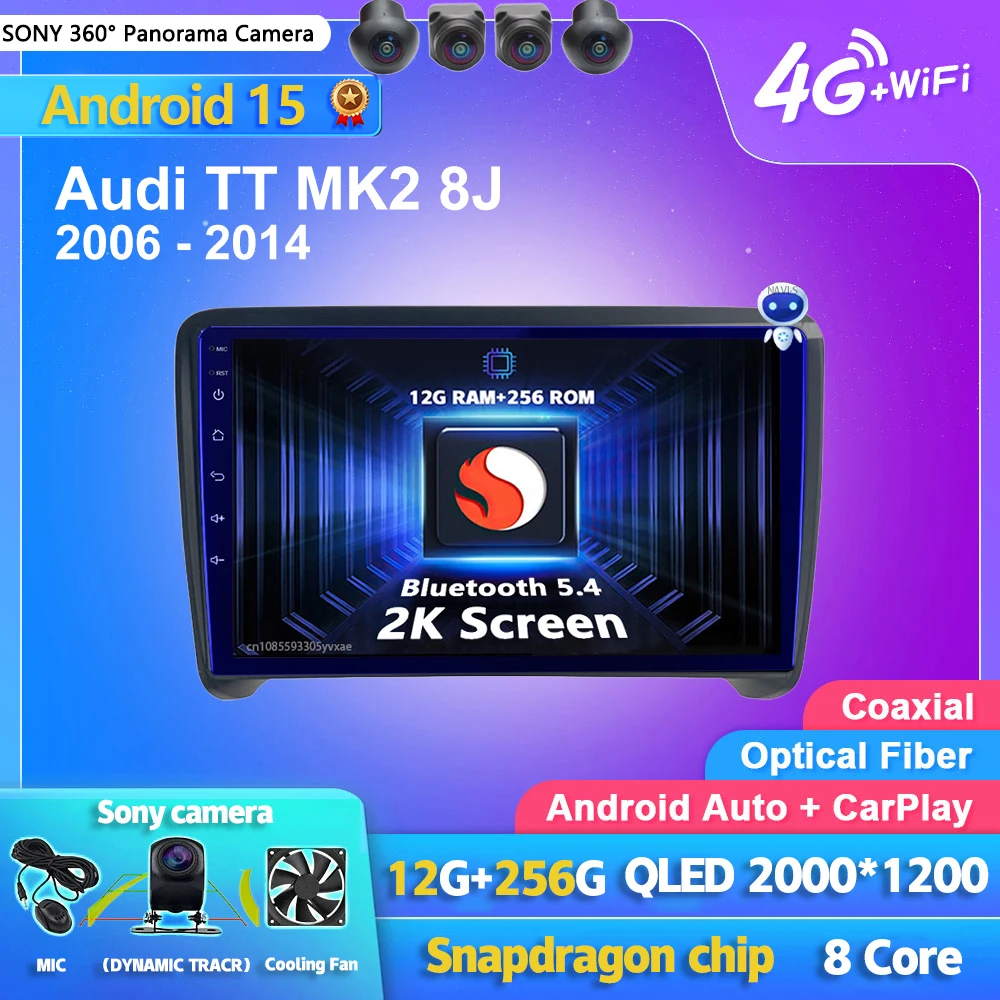 Android 15 Carplay Auto 2K Screen Car Radio Multimedia Player For Audi TT MK2 8J 2006 - 2014 Autoradio GPS Stereo 2din Head Unit $89.40