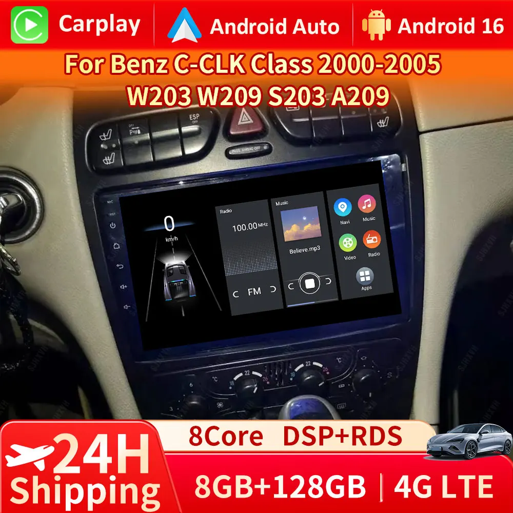 Android 16 Car Radio Autoradio For Mercedes-Benz-CLK W209 W203 W208 W463 Vaneo Viano Vito Multimedia CarPlay Stereo Host $89.60