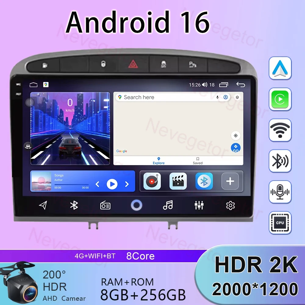 BT For Peugeot RCZ 308 SW 2007-2015 408 2012-2020 Android 15 QLED Touch Screen Auto 8G+256G Radio Car Multimedia Video Player 5G $102.29