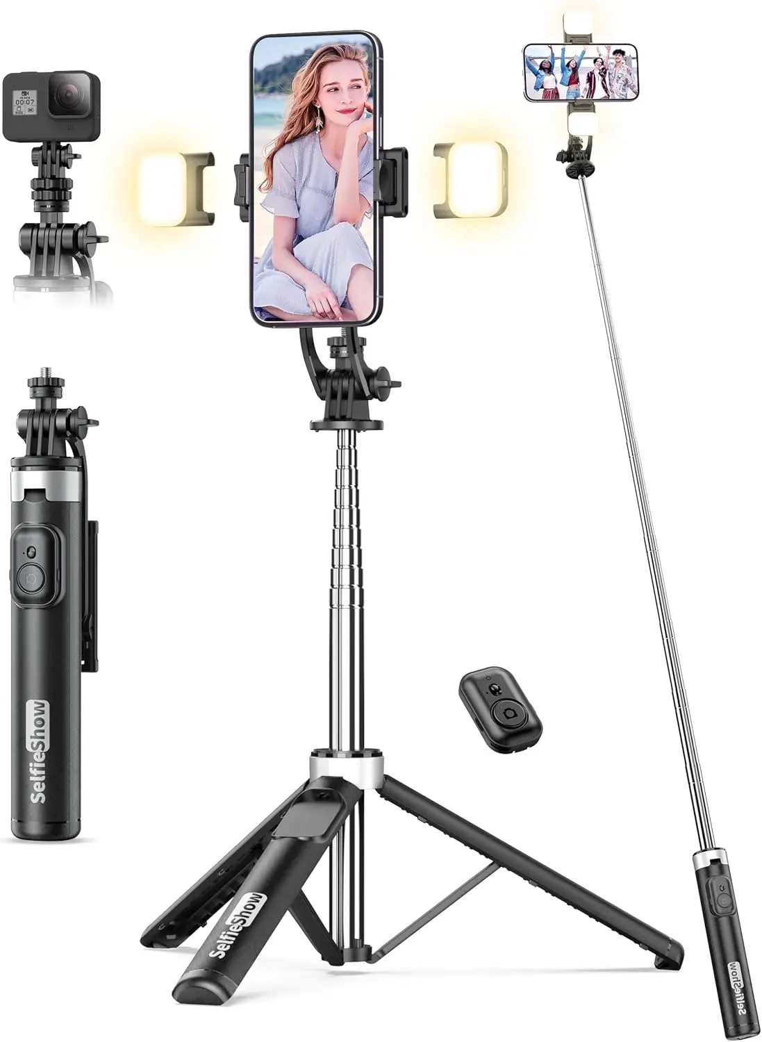 53'' Extendable Selfie Stick Tripod with Light & Remote, Portable Phone Stand Compatible with iPhone Android $9.57