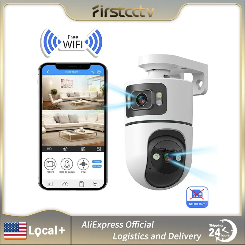 FIRSTCCTV WiFi Indoor Smart Camera 3MP Dual Screen Lens 2.4G Infrared Night Vision Motion Detection Auto Track Two-Way Audio $12.35