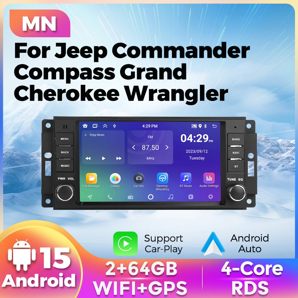 Navifly Android 15 Auto CarPlay Car Radio Stereo Player GPS For Jeep Chrysle Compass Commander Grand Cherokee Wrangler Liberty $114.56