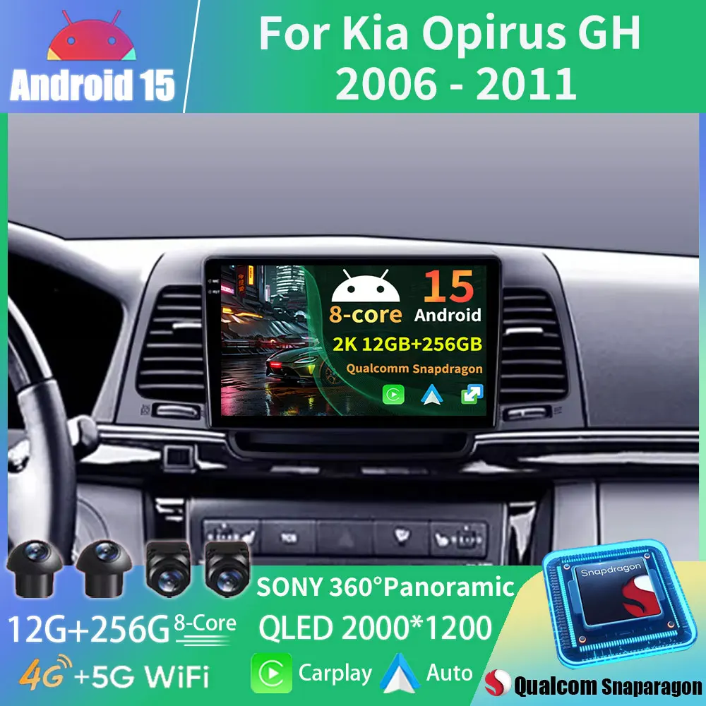 For Kia Opirus GH 2006 - 2011 Android 15 Car Radio Video Multimedia Player Navigation GPS Carplay 4G WIFI BT Auto DSP Stereo 360 $77.11
