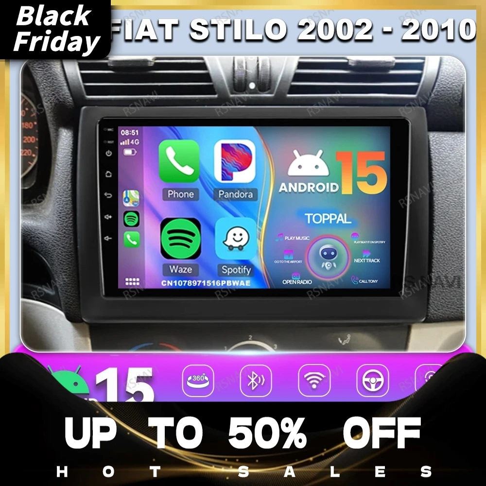 Car Radio Android 14 For Fiat Stilo 2002 - 2010 Qualcomm WIFI+ 4G LTE BT RDS DVD IPS Snapdragon Multimedia AI Voice 8 Core QLED $78.68