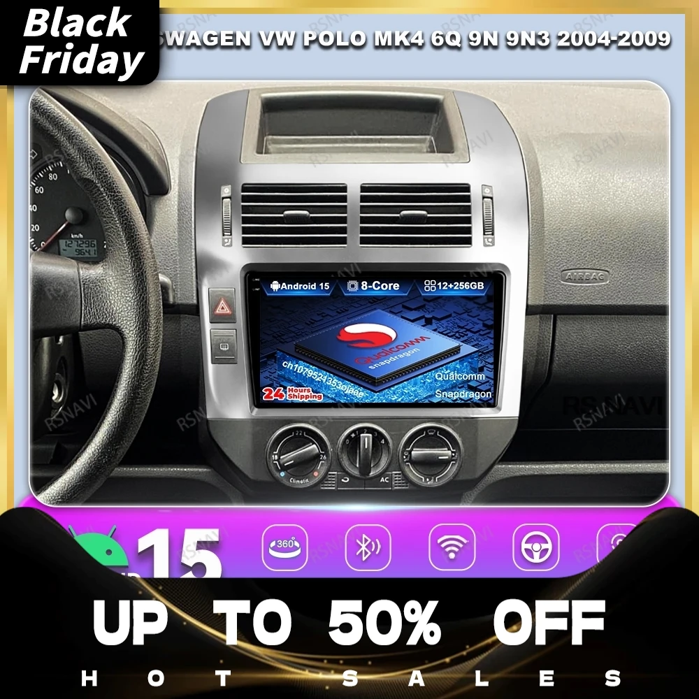 Android 15 Car Radio For Volkswagen VW Polo MK4 6Q 9N 9N3 2004-2009 Stereo Navigation DSP Head Unit QLED BT Viedo Player GPS $84.78