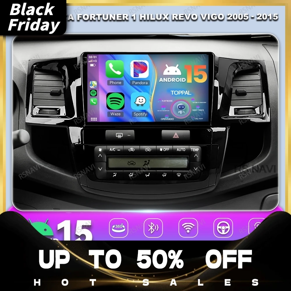 Android 15 Car Radio For Toyota Fortuner 1 Hilux Revo Vigo 2005 - 2015 5G WIFI Wireless Carplay Auto GPS Stereo Multimedia DSP $86.35