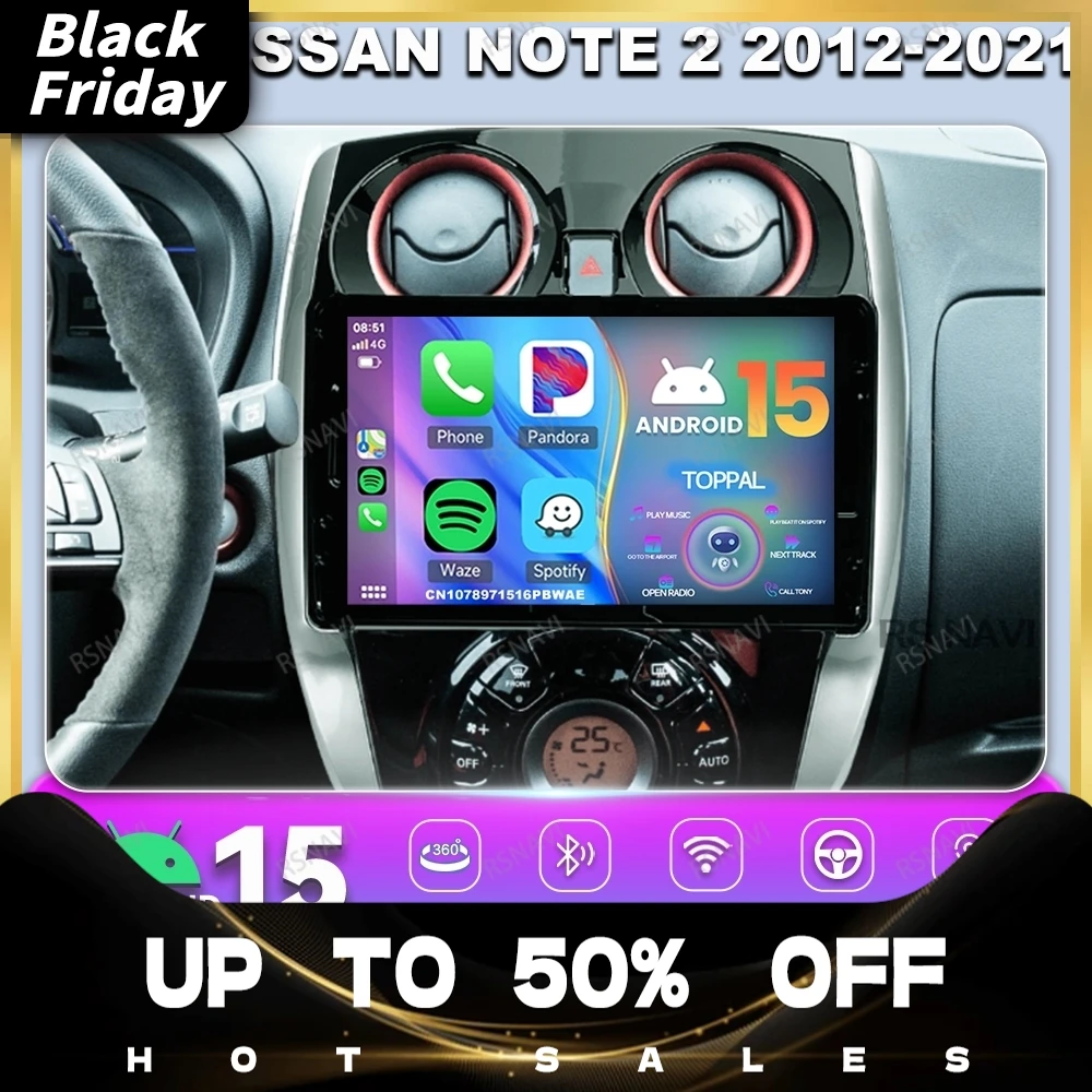 Car Radio Android 14 For Nissan Note 2 2012-2021 WIFI+ 4G LTE DSP Head Unit NO 2DIN BT Wireless Qualcomm 9/10 Inch Navigation $78.68