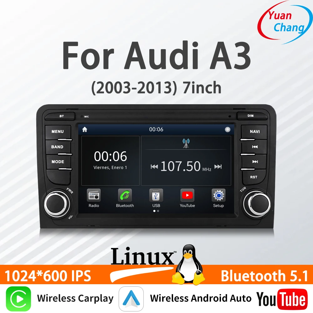 Suitable for Audi A3 7inch New Linux Car Stereo Wireless CarPlay Android Auto FM DSP Bluetooth Multimedia Player $152.23