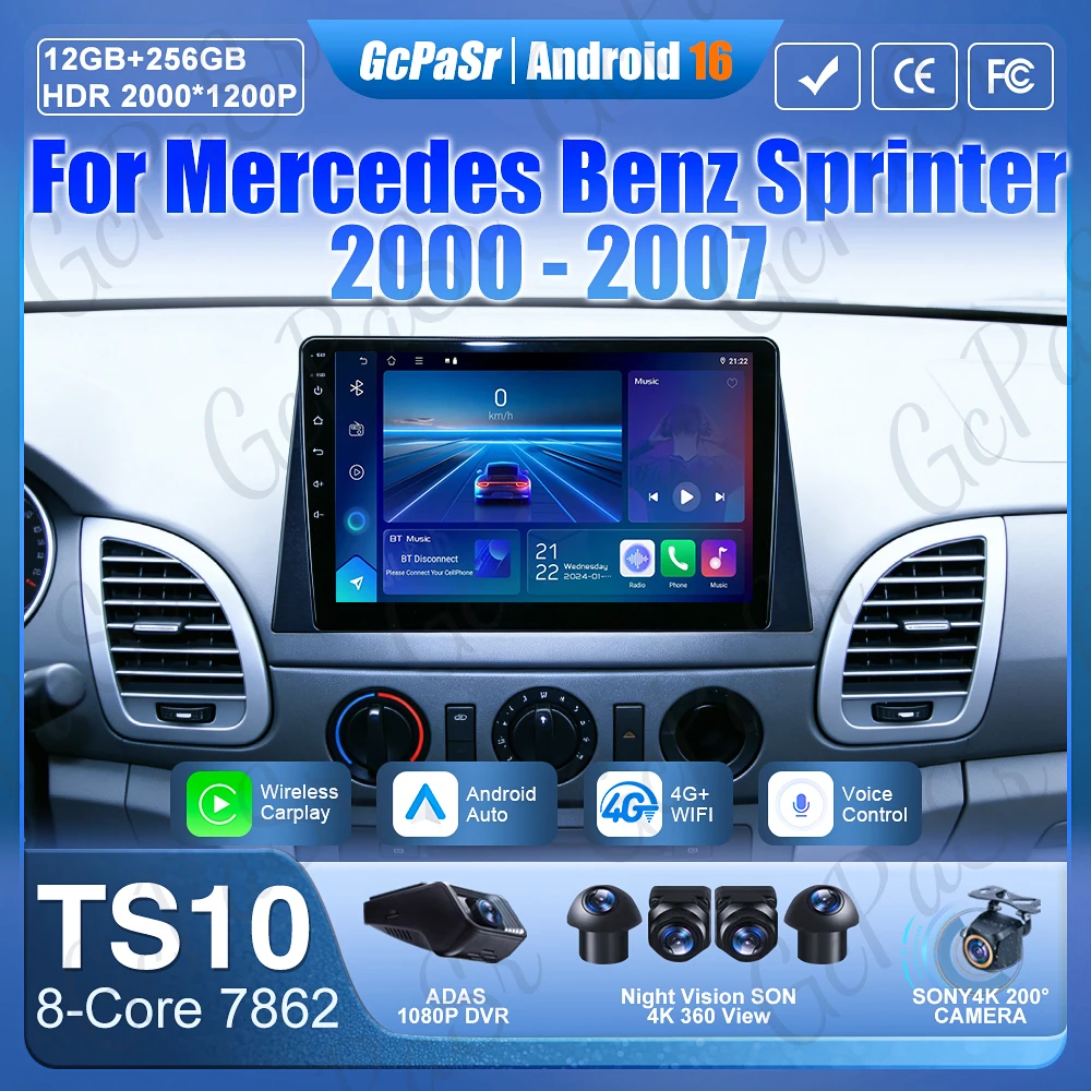 Android 16 Car Radio For Mercedes Benz Sprinter 2000 - 2007 Wireless Carplay Multimedia Player GPS Navigation BT Stereo Screen $75.60