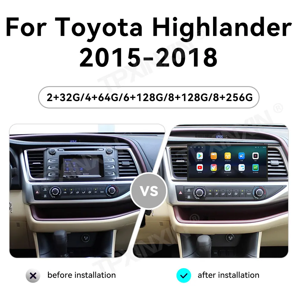 12.3'' Car Radio For Toyota Highlander 2015-2018 Android14 Multimedia Video Player Stereo Auto GPS Navigation Carplay Head Unit $305.10