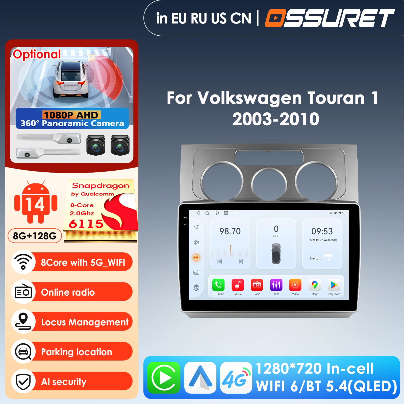 10.1inch 6115 Car Intelligent Screen Android Car Radio for Volkswagen Touran 1 2003 - 2010 Navigation GPS Carplay 4G WIFI Audio $68.00