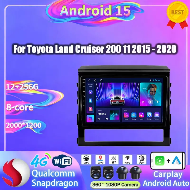 Wireless Carplay Auto For Toyota Land Cruiser 200 11 2015 - 2020 Android 15 Multimedia Video Player Head Unit 360 Camera RDS BT $116.55
