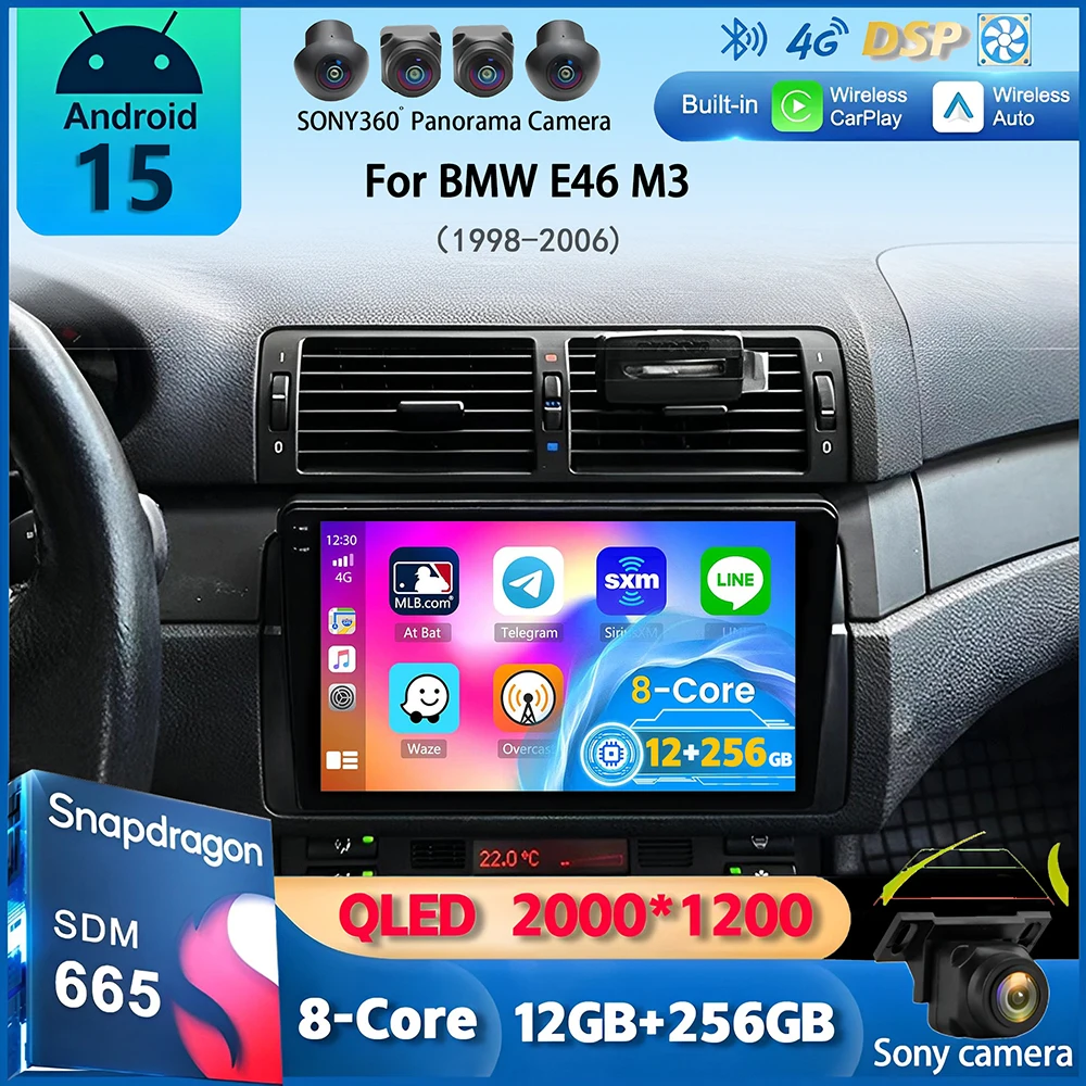 Android 15 Carplay Auto For BMW E46 M3 1998-2006 Car Radio Multimedia Video Player 2Din 4G+WIFI GPS Navigation Head Unit Stereo $95.09