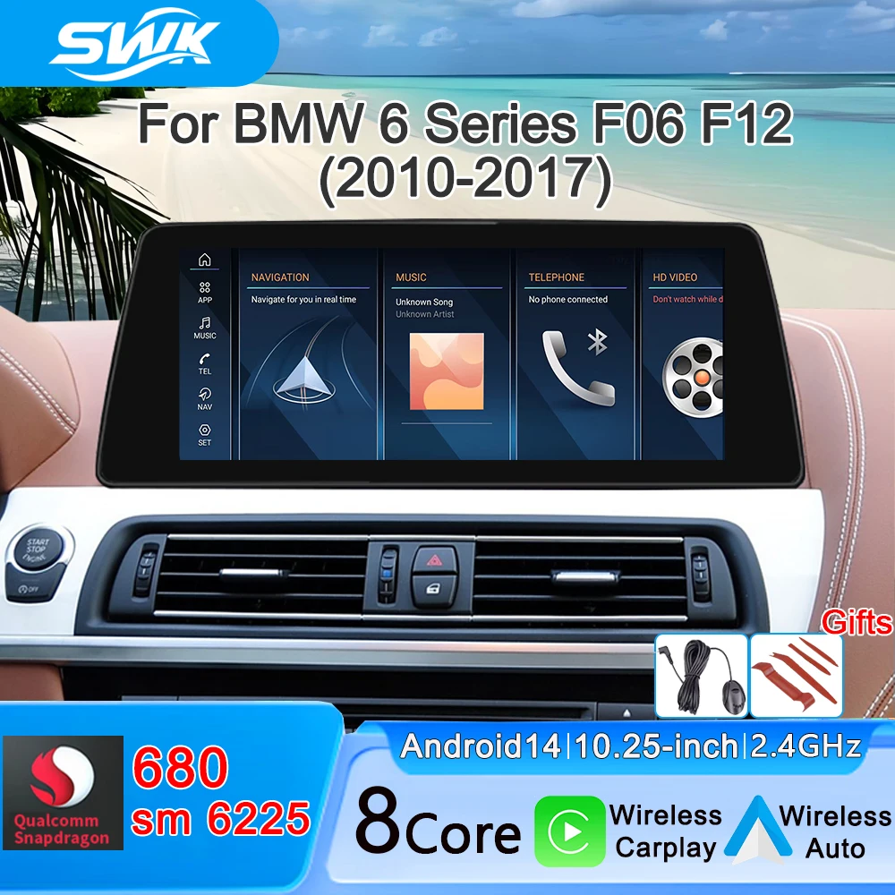 For BMW 6 Series F06 F12 2010-2017 Car Multimedia Player 10.25'' Android14 Qualcomm Snapdragon6225 Wireless Carplay/Auto WiFi 4G $512.93