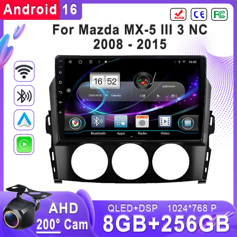 Android 16 For Mazda MX-5 III 3 NC 2008 - 2015 2K Incell Screen Plug and Play Auto Radio Head Unit GPS Navigation Dash Cam Wifi $82.83