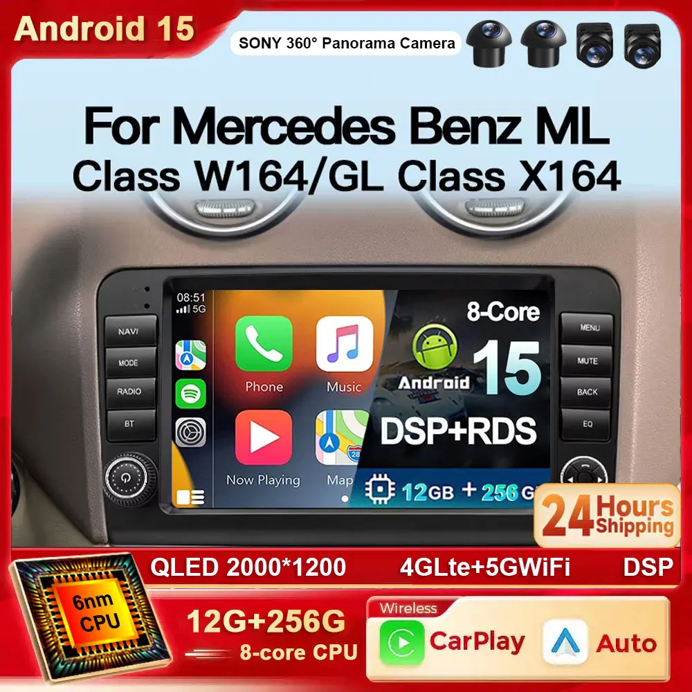 Android 15 Car radio For Mercedes Benz M-Class W164 GL-Class X164 ML GL Car Radio CarPlay 4G WFI BT Auto GPS No 2 din 2din DVD $89.59