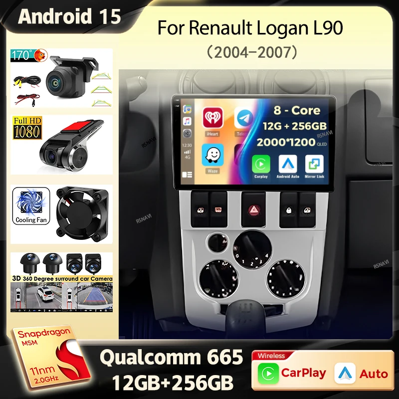 Android 15 Carplay Auto DSP Car Radio For Renault Logan L90 2004 2005 2006 2007 GPS Navigation Multimedia Video Player Wifi+4G $92.05