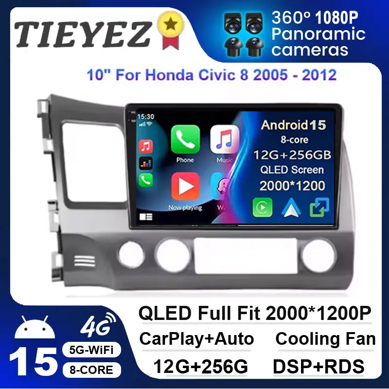 10“ Android 15 For Honda Civic 8 2005 2006-2012 Car Stereo Radio Multimedia Player GPS Head Unit 4G WIFI Carplay Auto $77.37