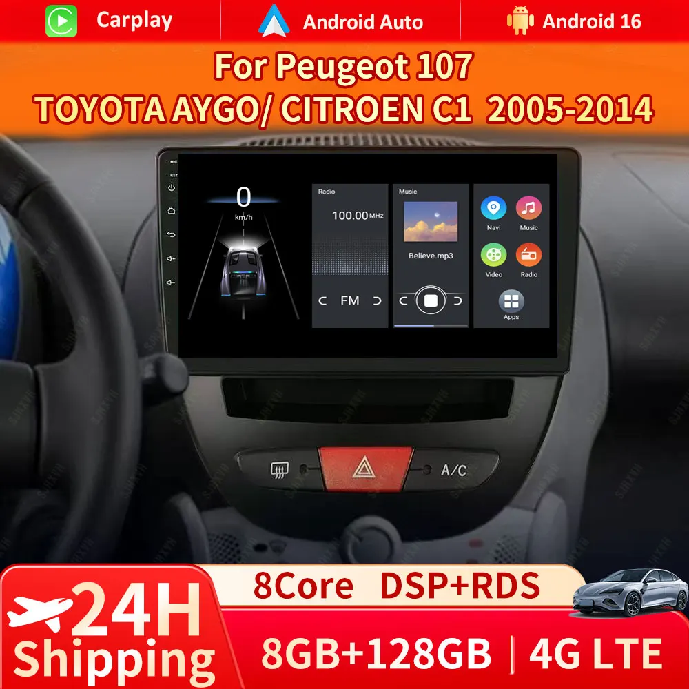 Android 16 2 Din Car Multimedia Player For Peugeot 107 Toyota Aygo Citroen C1 2005-2014 Head Unit Stereo GPS Navigation BT WIFI $81.37