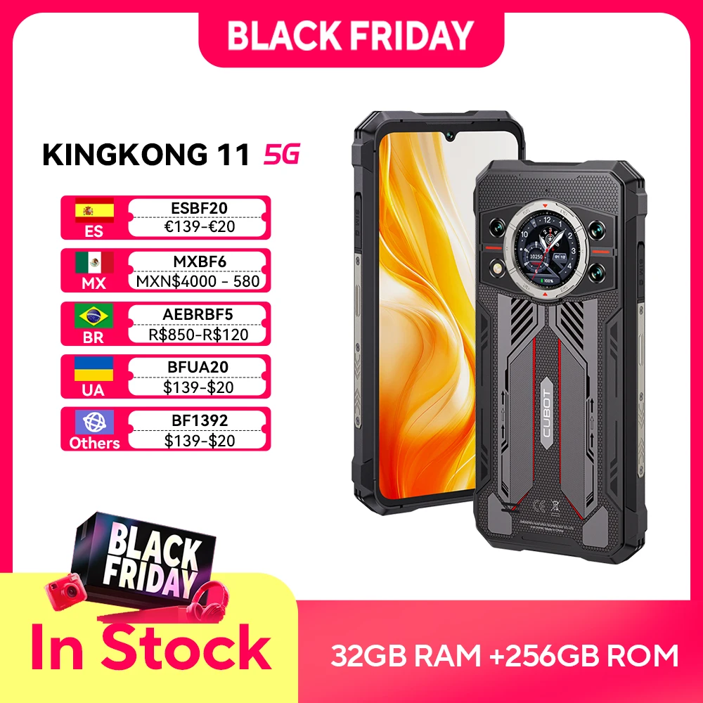 Rugged Smartphone 5G Cubot KingKong 11, 10200mAh Battery, Dimensity 7025, 6nm, 2.5GHz, 32GB RAM(16+16), 256GB ROM,108MP Camera $206.99