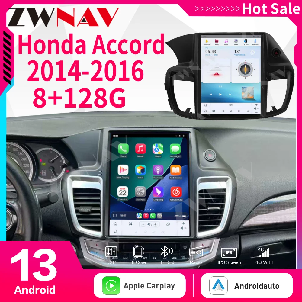 Qualcomm chip 12.1’’Android13 For Honda Accord 2014-2016 Car Radio Car GPS Navigation CarPlay HD Screen Multimedia Player $741.30